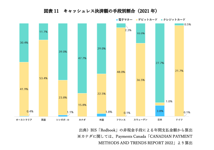特にドイツやフランスなどはデビットカードでの決済が、その大半を占めているのがよくわかります。